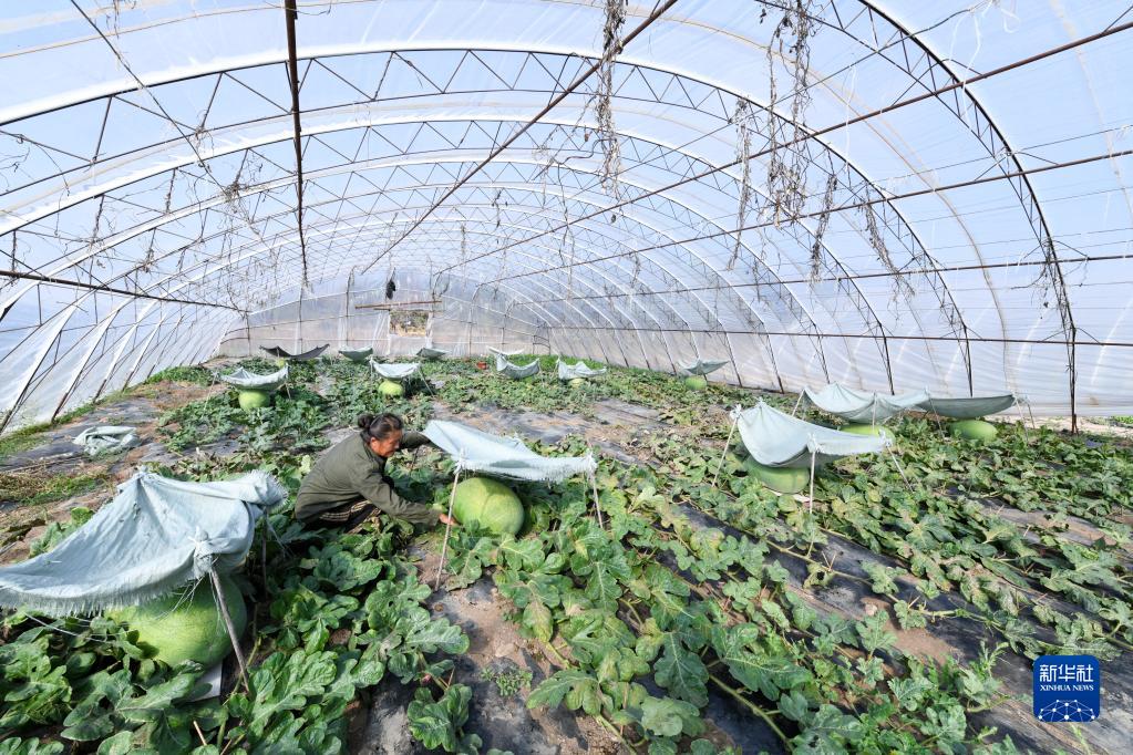 農民在興十四村現代農業(yè)示范園區大棚溫室中管理栽植的西瓜(9月16日攝)。