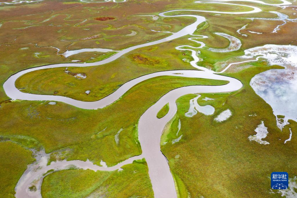 9月17日拍攝的阿萬(wàn)倉濕地風(fēng)光(無(wú)人機照片)。