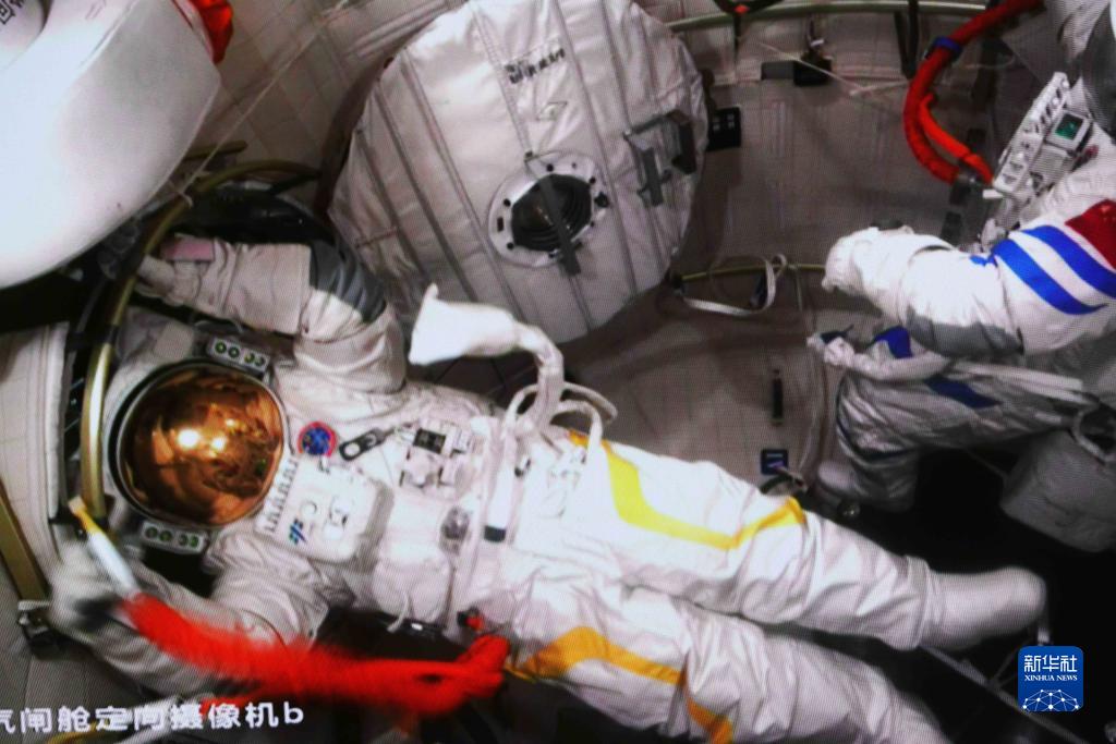9月17日在北京航天飛行控制中心拍攝的神舟十四號航天員蔡旭哲結束出艙任務(wù)返回問(wèn)天實(shí)驗艙的畫(huà)面。