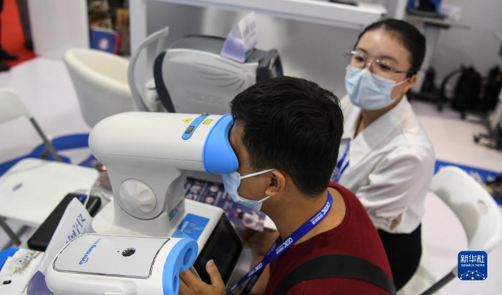 9月17日,在東博會(huì )高新技術(shù)展區,參觀(guān)者在體驗一款視力測試儀。