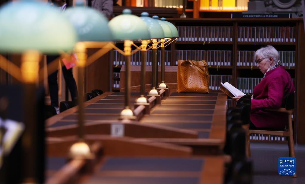 9月17日,讀者在位于巴黎的法國國家圖書(shū)館黎塞留館的“橢圓大廳”閱讀。