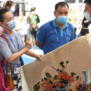 9月18日,觀(guān)眾在東博會(huì )“一帶一路”國際展區挑選白俄羅斯地毯。