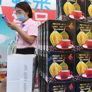 這是9月18日在南寧國際會(huì )展中心拍攝的貓山王榴蓮咖啡。