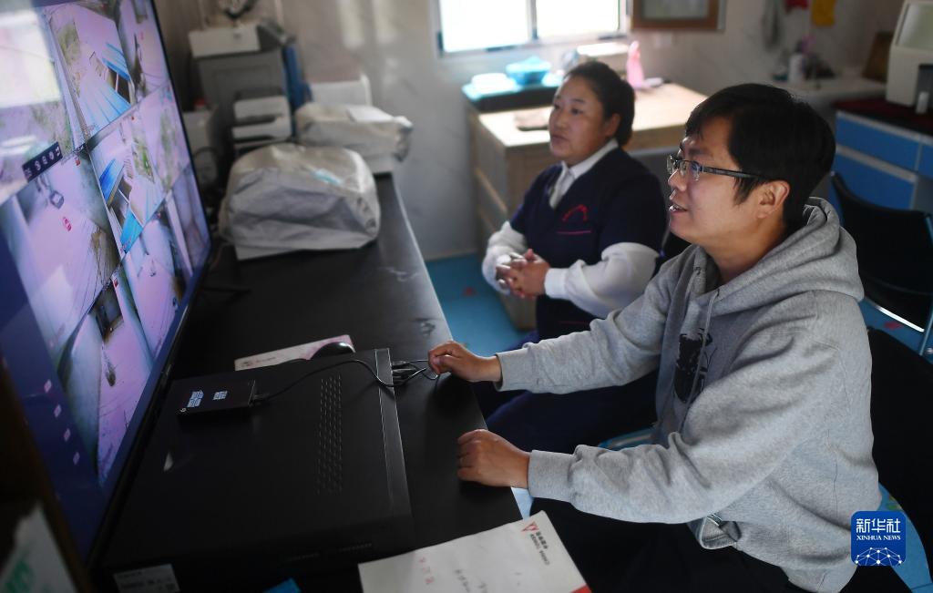 9月18日,在青海野生動(dòng)物救護繁育中心,工作人員查看監控,了解荒漠貓的進(jìn)食情況。