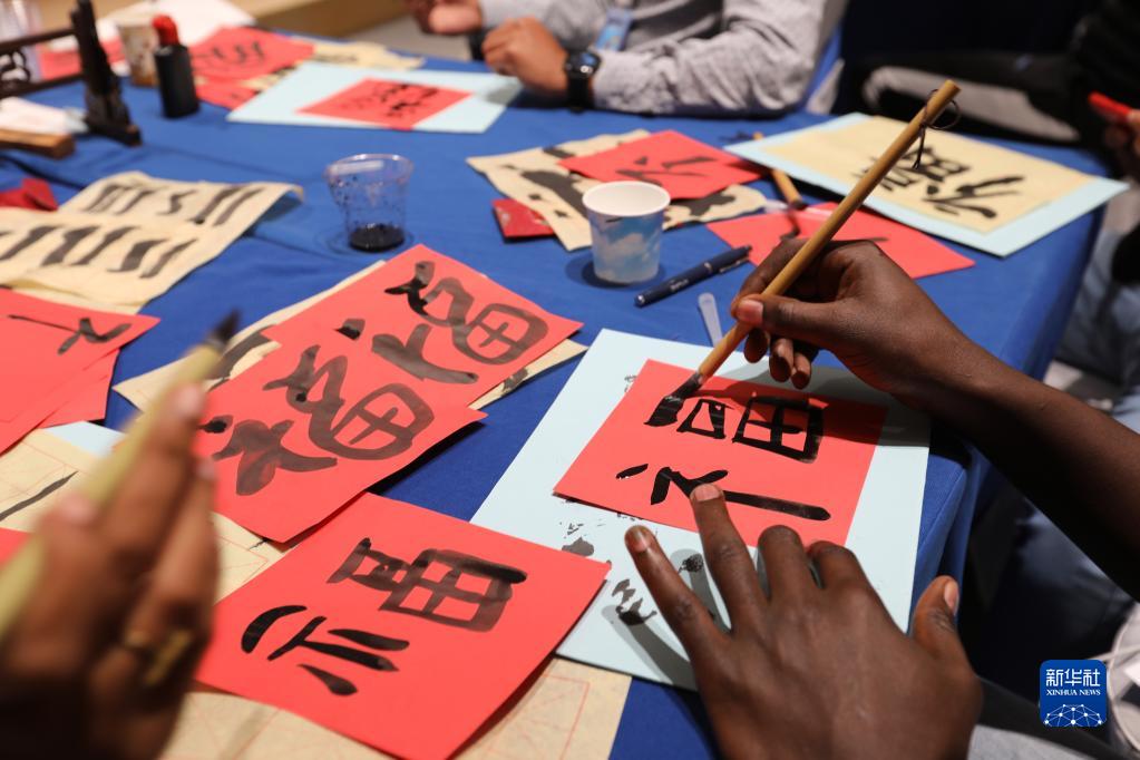 當日,在吉布提非洲青年創(chuàng )新創(chuàng )業(yè)中心,吉布提孔子學(xué)院老師為來(lái)自吉布提、埃賽俄比亞、肯尼亞、烏干達的非洲創(chuàng )業(yè)青年上了一堂生動(dòng)的中國文化課。風(fēng)俗、書(shū)法、剪紙等中國文化引起了學(xué)員們的廣泛興趣。