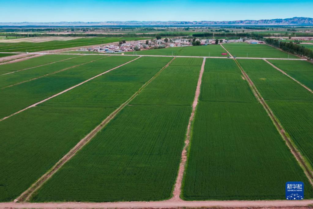 這是內蒙古五原縣新公中鎮小麥種植基地(2022年6月22日攝,無(wú)人機照片)。
