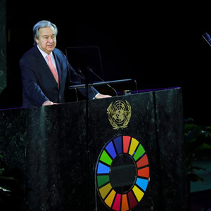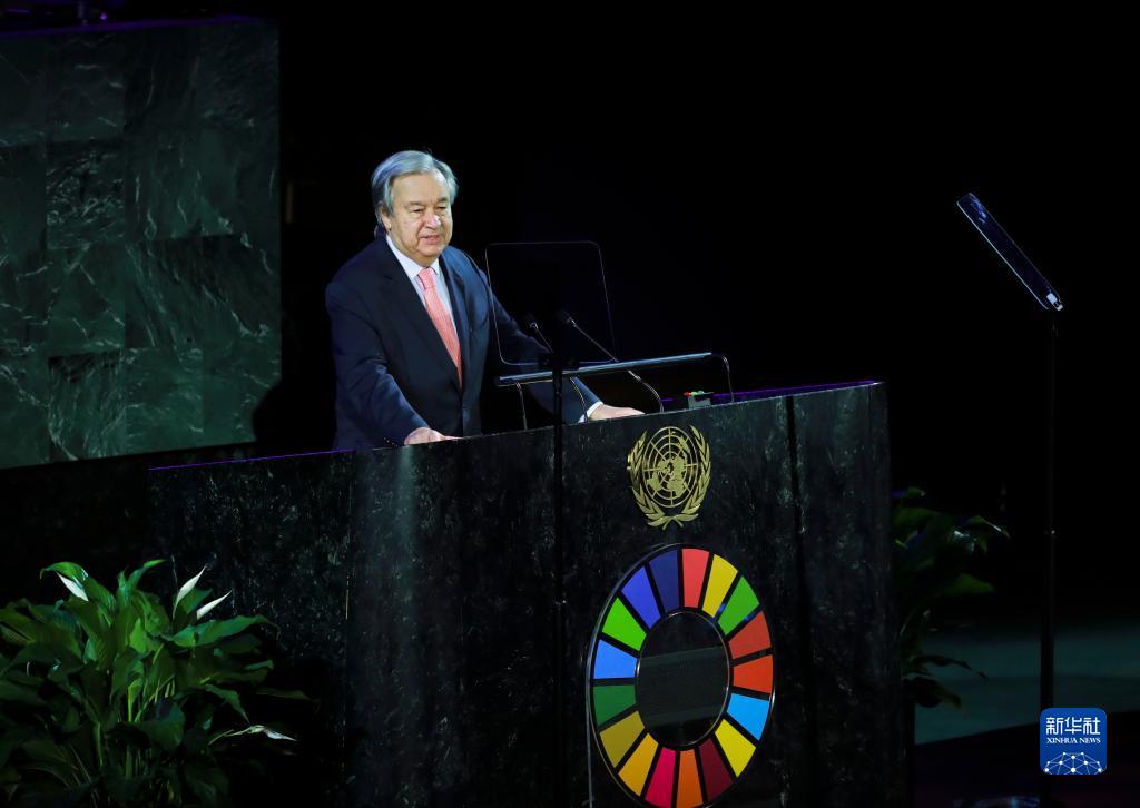 9月19日,在位于紐約的聯(lián)合國總部,聯(lián)合國秘書(shū)長(cháng)古特雷斯在第三次“可持續發(fā)展目標時(shí)刻”高級別活動(dòng)上致辭。