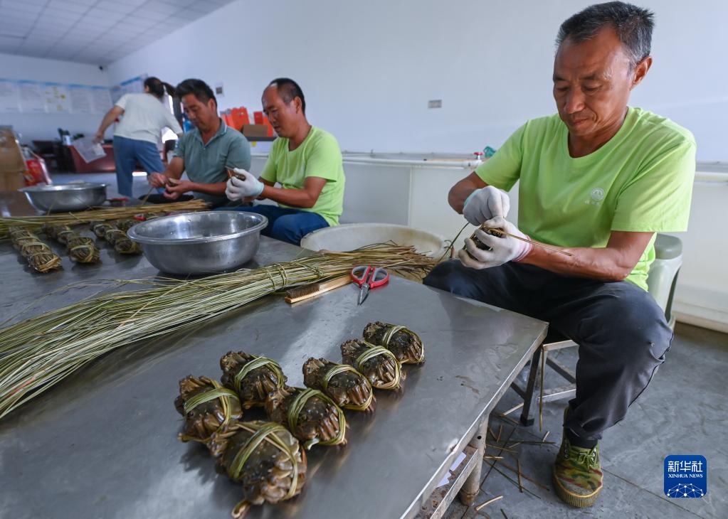 9月20日,在位于織里鎮喬溇村的溇港人家太湖蟹生態(tài)養殖基地內,蟹農們用稻草捆扎太湖蟹,即將發(fā)往各地。