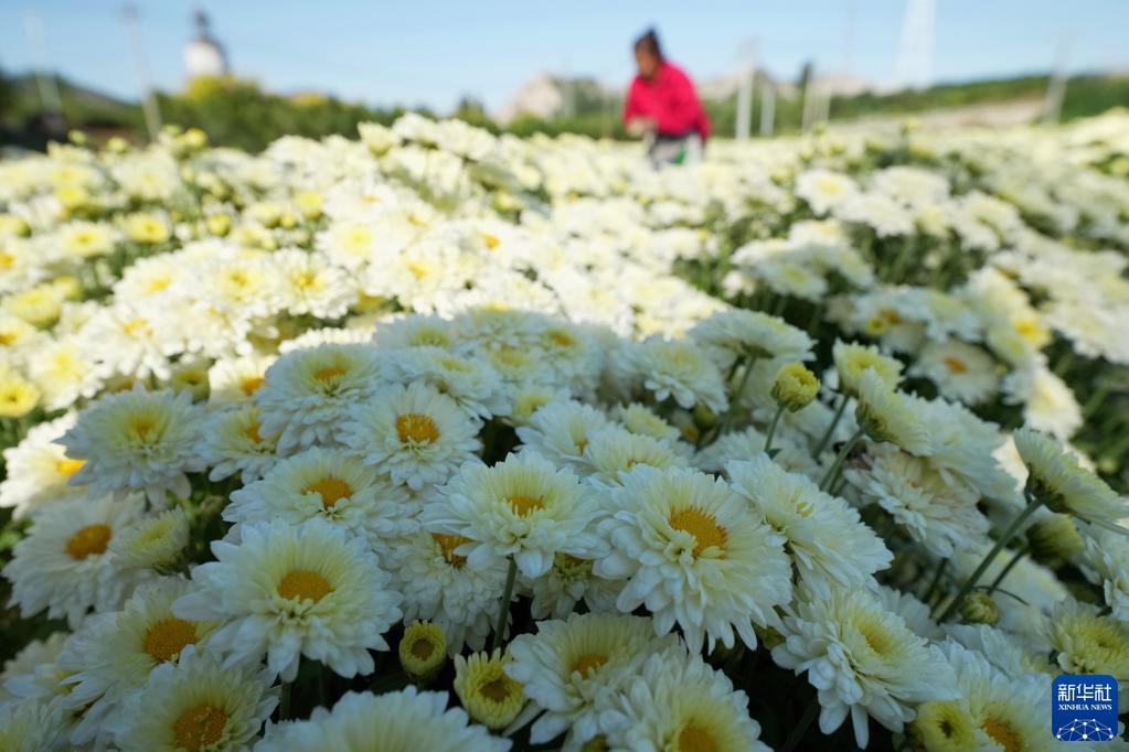 9月20日,石家莊市井陘礦區賈莊鎮農民在采摘太行白菊。