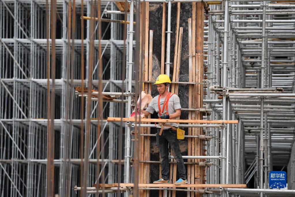 9月20日,工人在南寧國際鐵路港電商物流區施工。