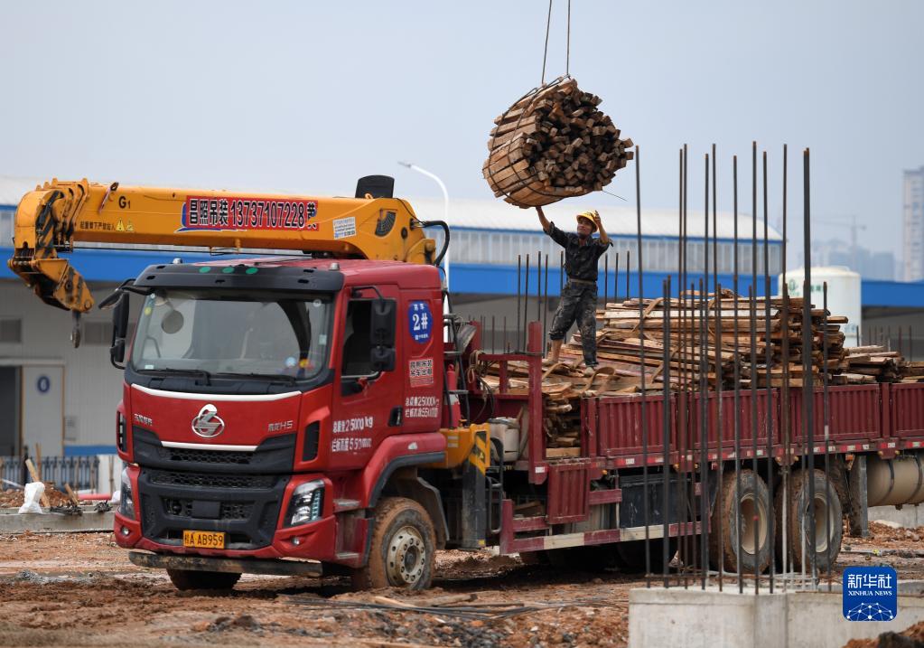 9月20日,工人在南寧國際鐵路港電商物流區施工。