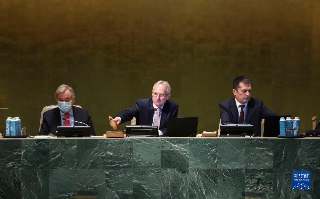 9月20日,在位于紐約的聯(lián)合國總部,第77屆聯(lián)合國大會(huì )主席克勒希(中)主持聯(lián)合國大會(huì )一般性辯論開(kāi)幕式。