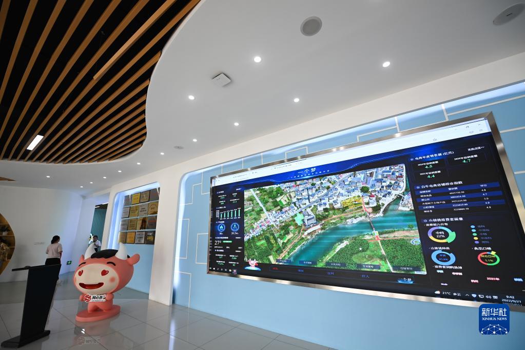 9月21日拍攝的杭州市臨安區昌化鎮白牛村電商大樓農創(chuàng )客中心的數字大屏。