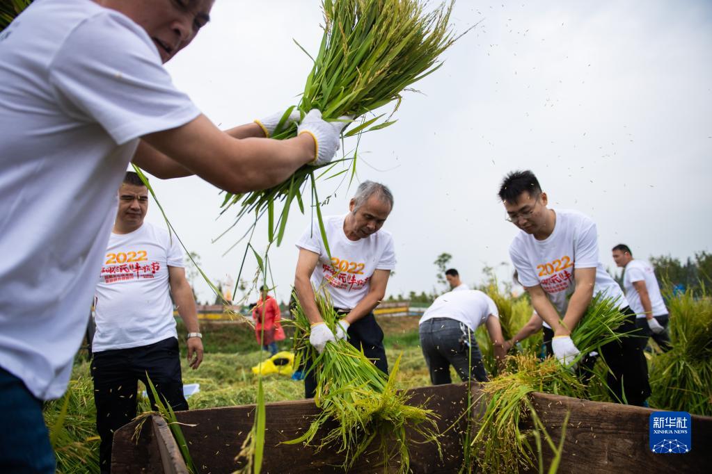 當日,湖南省益陽(yáng)市南縣麻河口鎮舉行“農民稻田趣味運動(dòng)會(huì )”,當地村民和游客通過(guò)環(huán)田跑步、收獲水稻、稻田捉鴨、斗車(chē)運糧等運動(dòng)比拼,迎接中國農民豐收節的到來(lái)。南縣是中國農民豐收節湖南分會(huì )場(chǎng)之一。