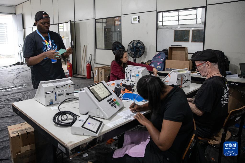 9月21日,在巴西里約熱內盧,工作人員參與大選電子投票箱的密封工作。