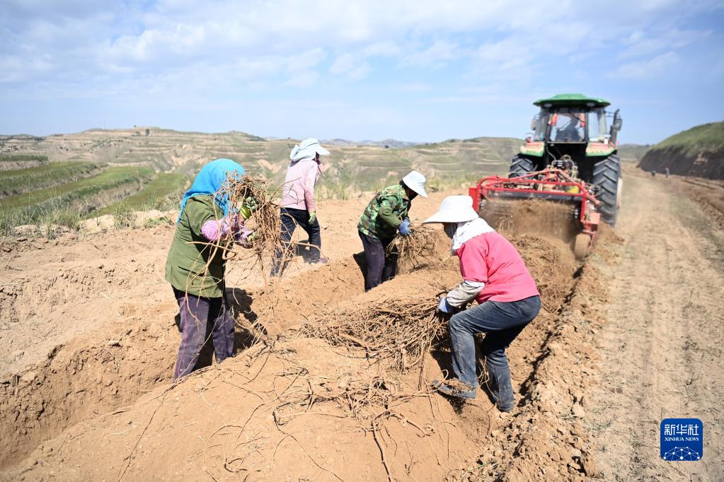 9月21日,農民在位于榆中縣貢井鎮的榆中宏鑫藥材專(zhuān)業(yè)合作社種植基地采收甘草。