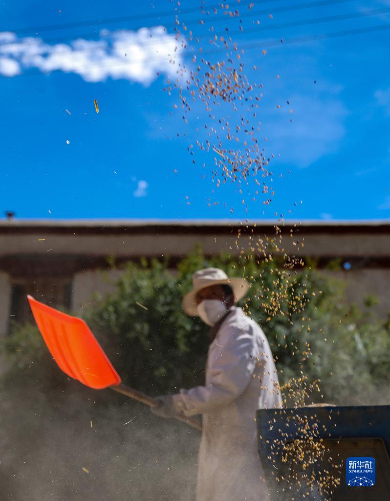 9月21日,拉薩市林周縣江熱夏鄉江夏村的村民在揚場(chǎng)。