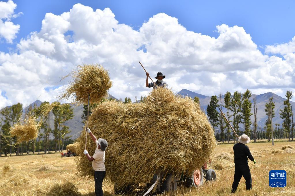 第五個(gè)中國農民豐收節在即,西藏自治區拉薩市林周縣的田間地頭一片繁忙。據了解,林周縣目前累計糧食收獲面積為12.43萬(wàn)畝,已收獲秋糧總產(chǎn)量預估6萬(wàn)噸,豐收在望。