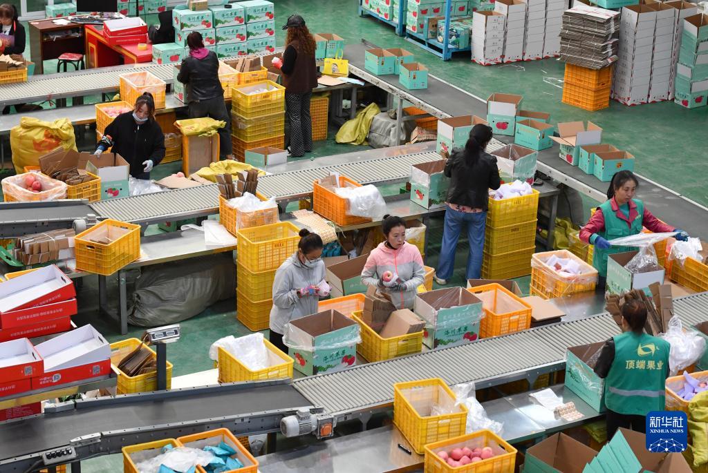9月20日,洛川縣一家果業(yè)公司的工作人員在包裝線(xiàn)上忙碌。