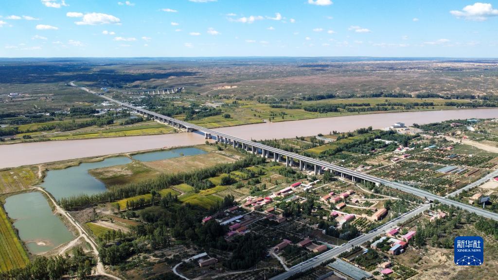 這是9月22日拍攝的位于黃河呼和浩特市托克托縣段的黃河特大橋(無(wú)人機照片)。