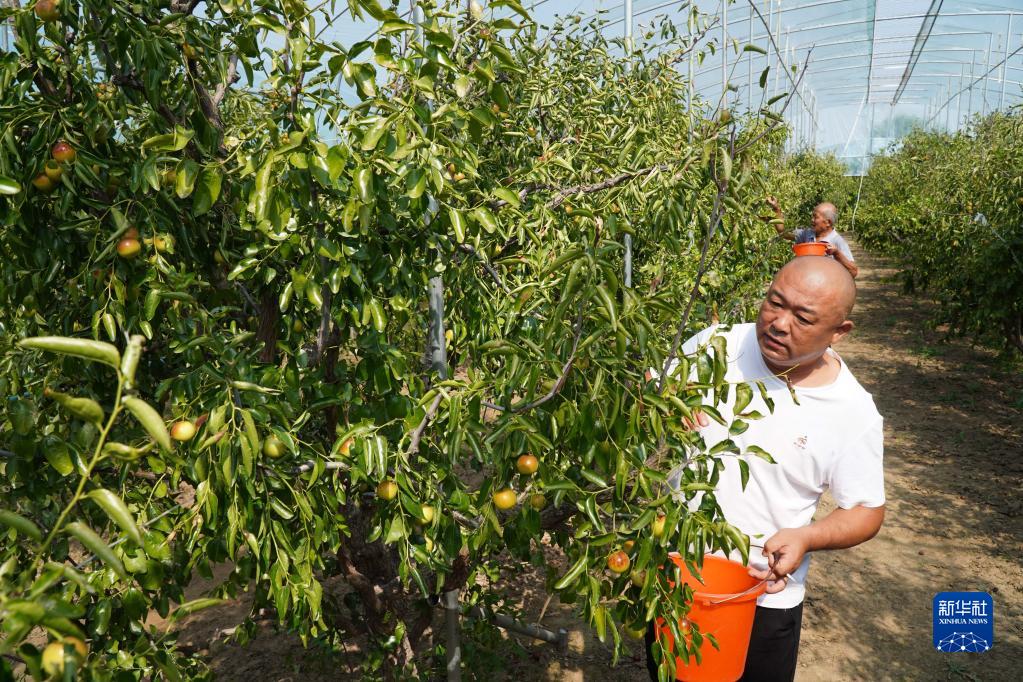 秋分前后,山東省濱州市沾化區大棚冬棗種植園內的冬棗開(kāi)始大面積進(jìn)入成熟期,棗農們忙著(zhù)采摘成熟的冬棗,喜迎豐收。近年來(lái),當地采取“黨支部+合作社+農戶(hù)”的方式,積極推廣大棚冬棗,帶動(dòng)棗農抱團發(fā)展、實(shí)現增收致富,目前全區大棚冬棗種植面積達到5萬(wàn)余畝。