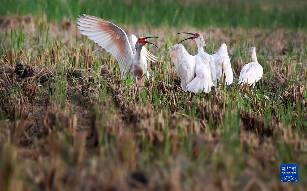 陜西省漢中市洋縣位于秦嶺南麓、漢中盆地東緣,是世界聞名的“朱鹮之鄉”。目前當地生活的朱鹮有7000多只,秋收時(shí)節,朱鹮在田間飛舞嬉戲,構成一幅自然和諧的田園美景。