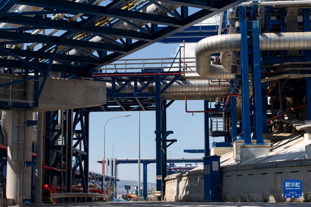 這是9月21日拍攝的希臘雷維蘇薩液化天然氣接收站內的設施。