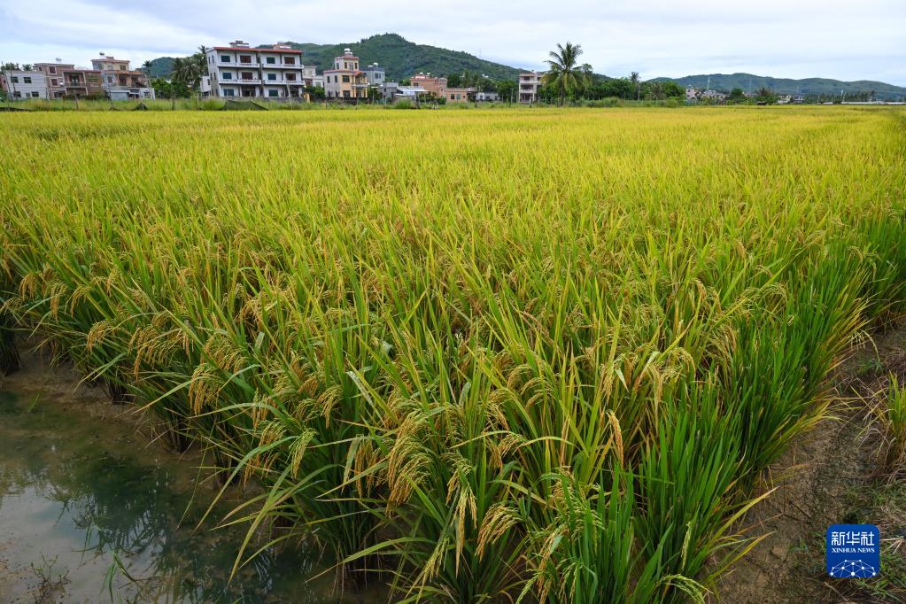 近日,位于海南陵水的國家南繁科研育種核心區安馬洋基地的稻田里稻香撲鼻,一片豐收在望的景象。