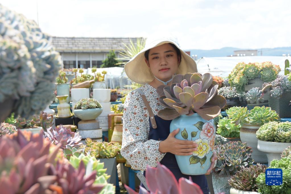 9月20日,在云南省紅河哈尼族彝族自治州蒙自市,“90后”創(chuàng )業(yè)青年王欣蕊在整理擺放多肉植物。王欣蕊大學(xué)畢業(yè)后返鄉從事多肉種植銷(xiāo)售。對她來(lái)說(shuō),多年積累下來(lái)的創(chuàng )業(yè)經(jīng)驗,同她越做越好的“多肉事業(yè)”一樣,都是一份難得的收獲。