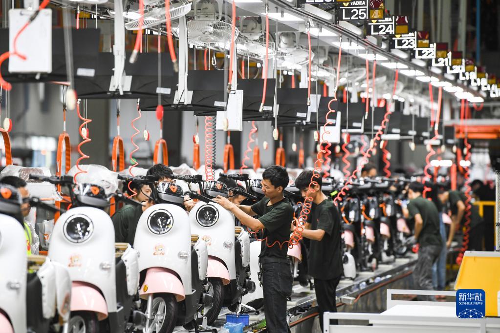 9月22日,工人在雅迪集團重慶永川電動(dòng)車(chē)生產(chǎn)基地智能化生產(chǎn)車(chē)間作業(yè)。