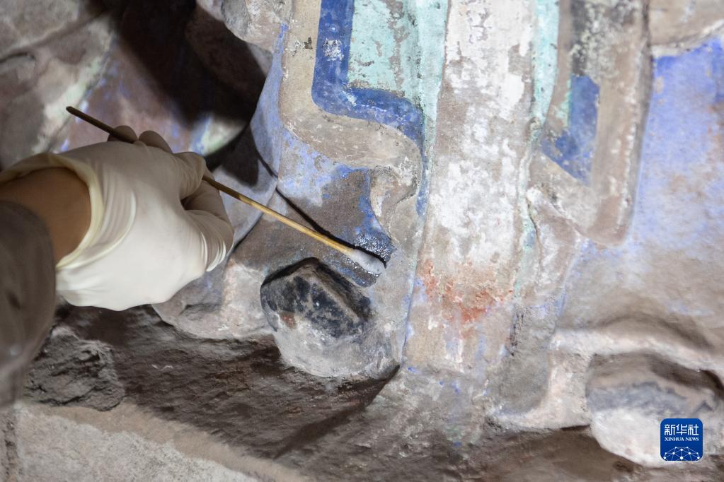 9月22日,大足石刻研究院保護工程中心的工作人員對舒成巖摩崖造像進(jìn)行本體修復。