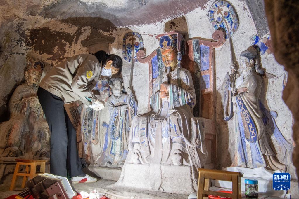 9月22日,大足石刻研究院保護工程中心的工作人員對舒成巖摩崖造像進(jìn)行本體修復。
