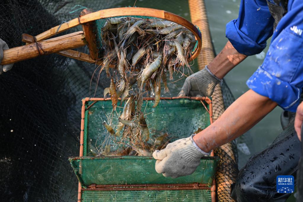 近日,浙江省湖州市吳興區八里店鎮豐盛灣水產(chǎn)養殖基地迎來(lái)沼蝦收獲季,工人們在蝦塘中圍網(wǎng)、捕獲、分揀、裝車(chē),展現出一幅具有江南水鄉特色的豐收圖景。
