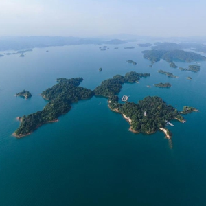 萬(wàn)綠湖建于1958年,又名新豐江水庫,位于廣東省河源市東源縣境內,因湖水常綠得名,水域面積達370平方公里,水質(zhì)優(yōu)良。