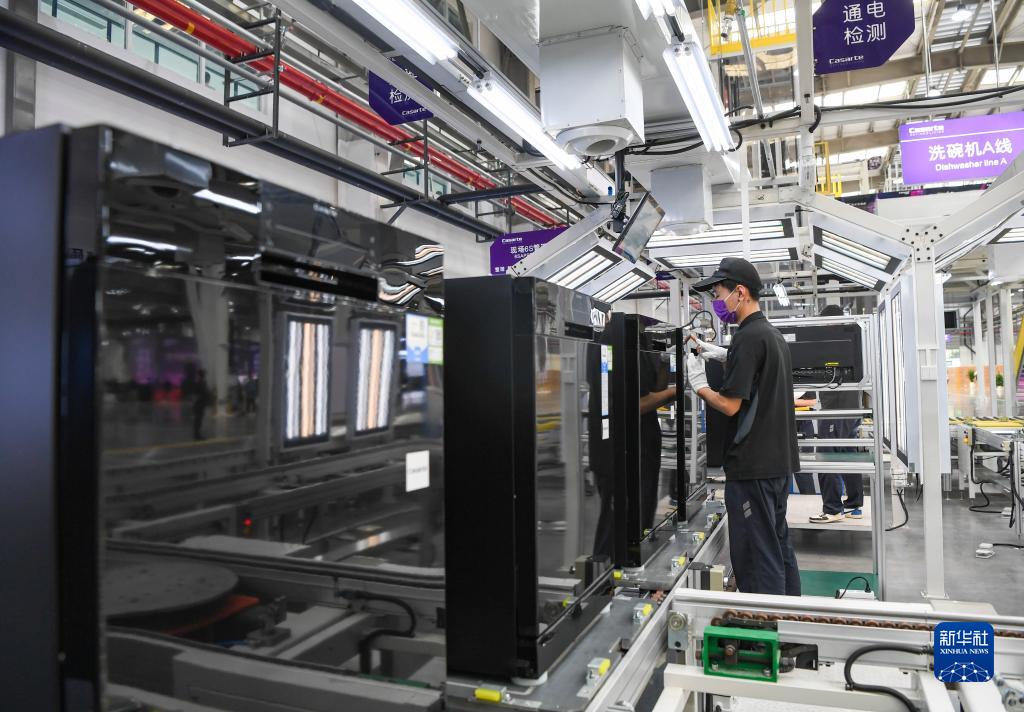 9月25日,工人在重慶海爾洗碗機互聯(lián)工廠(chǎng)作業(yè)。