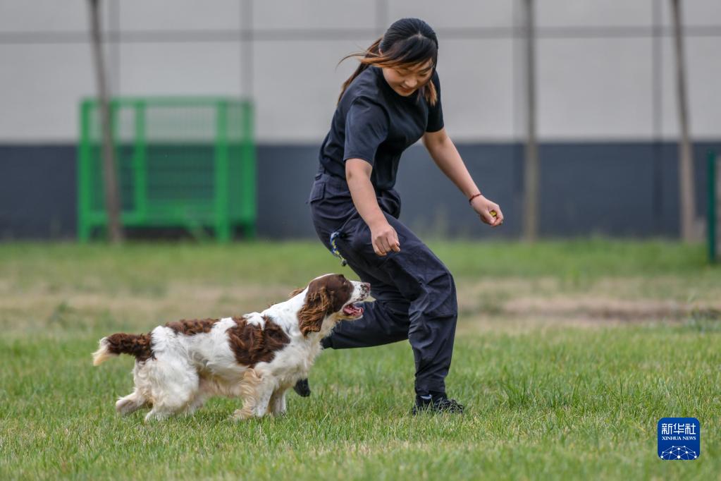 9月20日,訓導員許紋紋帶領(lǐng)搜索犬“巧克力”訓練。