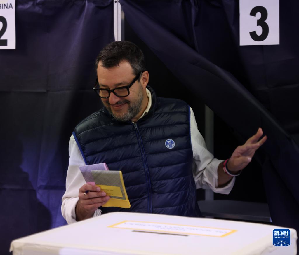 9月25日,意大利聯(lián)盟黨黨首薩爾維尼在米蘭的一處投票站準備投票。