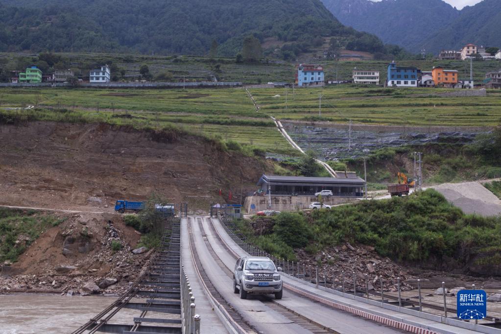 2022年9月14日,怒江州福貢縣布拉底村居民駕車(chē)通過(guò)布拉底西橋。新華社記者岑云鵬攝
