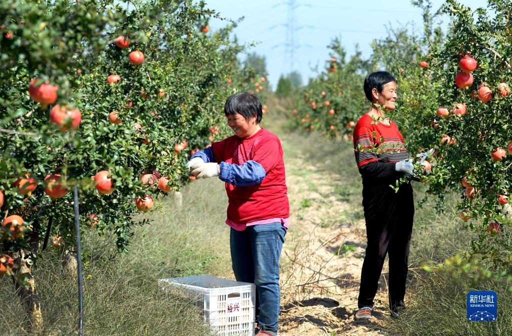 9月26日,在陜西省潼關(guān)縣港口社區東臺塬,裕興農業(yè)開(kāi)發(fā)有限公司的員工在采摘軟籽石榴。