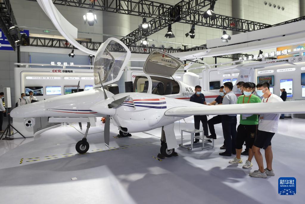 參觀(guān)者在安徽合肥舉辦的2022世界制造業(yè)大會(huì )上參觀(guān)展出的空中應急指揮機(9月20日攝)。