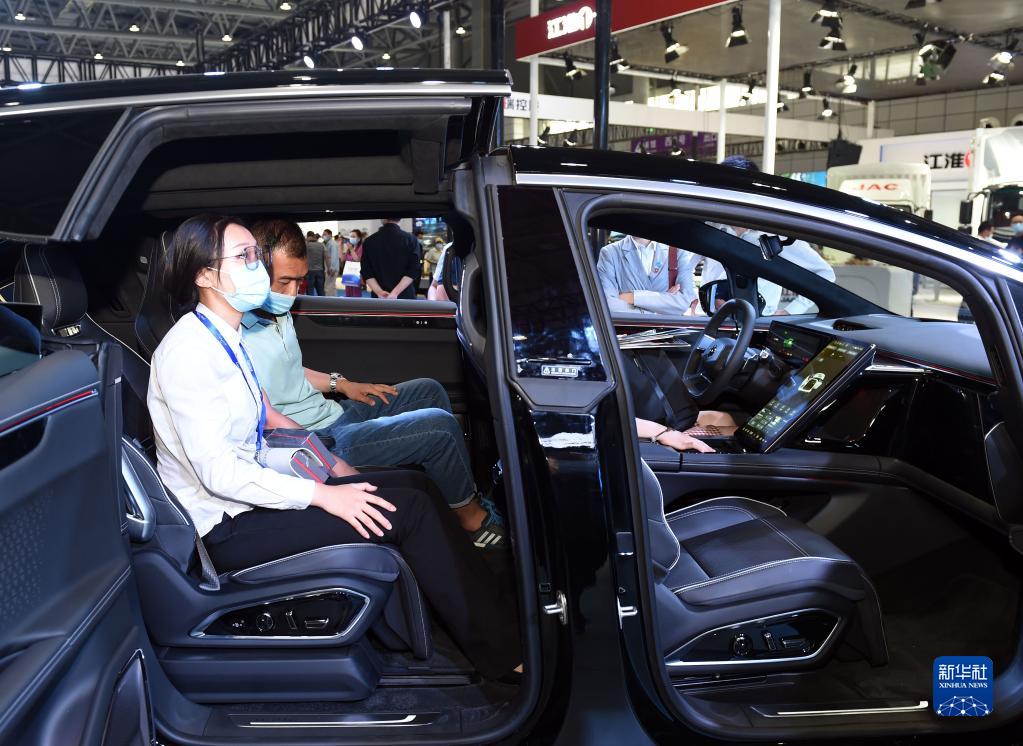 觀(guān)眾在安徽合肥舉辦的2022世界制造業(yè)大會(huì )新能源汽車(chē)展廳內參觀(guān)體驗(9月22日攝)。