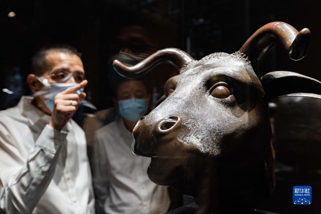 當日,“盛世回歸——海外回流文物特展”在上海市閔行區博物館開(kāi)幕,展覽包括“盛世重逢”和“華美賡續”兩個(gè)部分,匯聚了來(lái)自保利藝術(shù)博物館和北京市海淀區圓明園管理處的47件精美文物,均為海外回流精品文物。展品包括清代圓明園海晏堂十二生肖之牛首、虎首、猴首、豬首青銅獸首原件、馬首復制件,以及商周、春秋戰國、兩漢時(shí)期國寶級青銅重器。