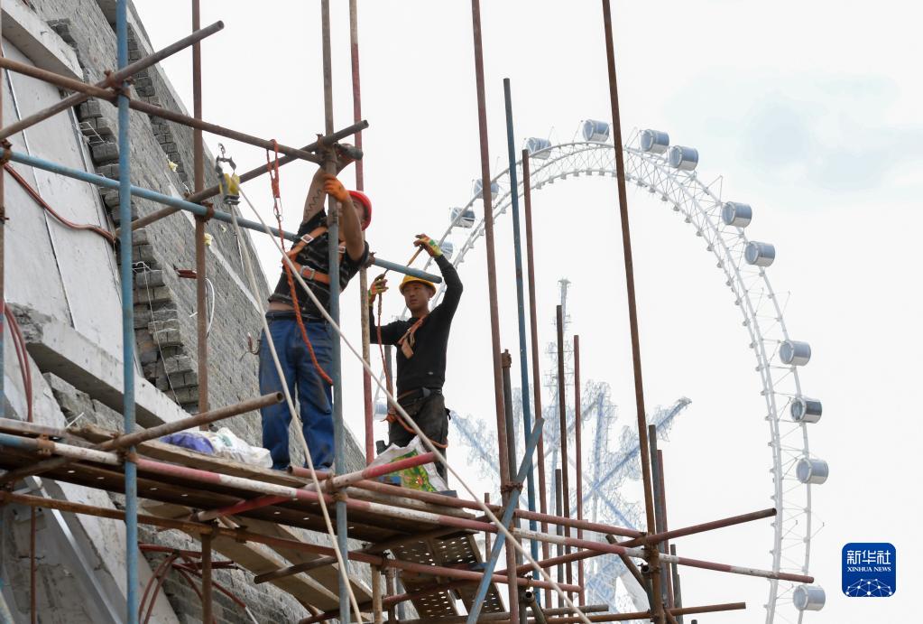 9月26日,工人在哈爾濱四季冰雪旅游項目現場(chǎng)施工。