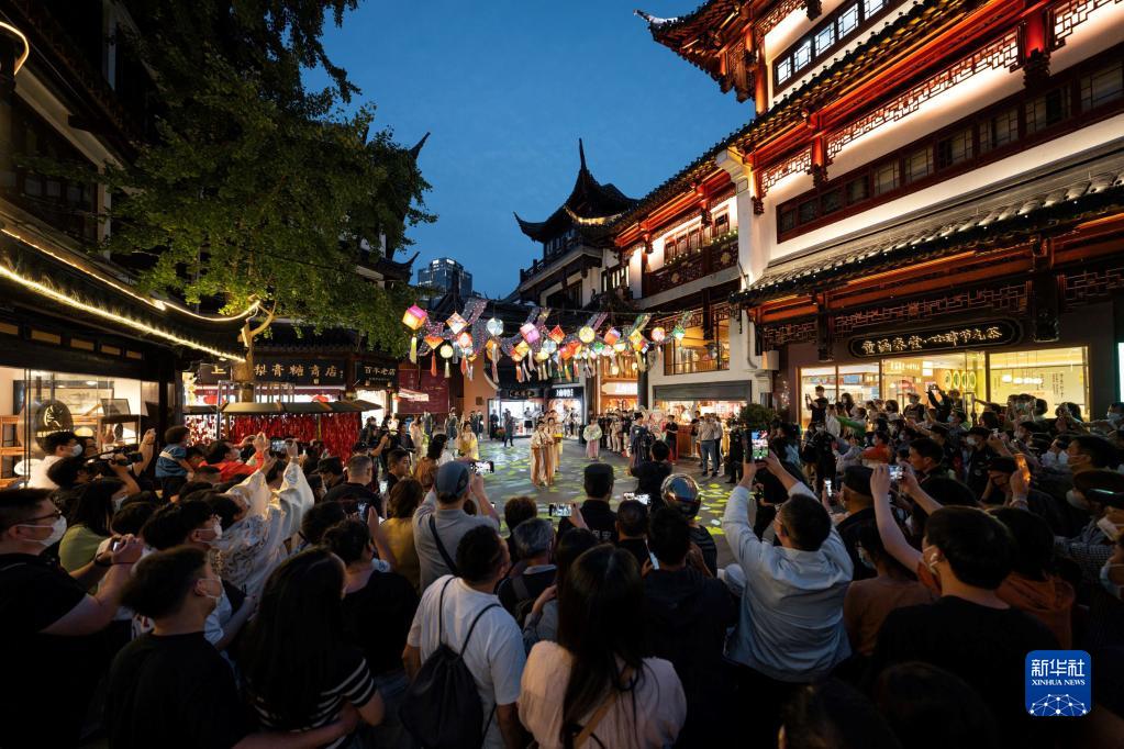 豫園商城以國風(fēng)主題的游園觀(guān)演體驗結合新國潮業(yè)態(tài),吸引年輕群體,共度意蘊悠長(cháng)又活力四射的老城廂之夜。