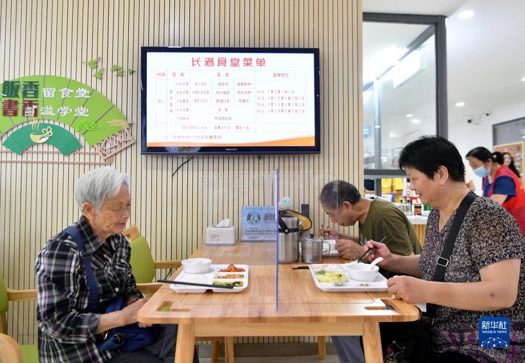 9月27日,在福州市華大街道屏山社區,老人們在用餐。