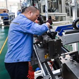 9月27日,在位于諸暨市店口鎮工業(yè)區的浙江萬(wàn)安科技股份有限公司數字化車(chē)間內,工人在流水線(xiàn)上生產(chǎn)作業(yè)。