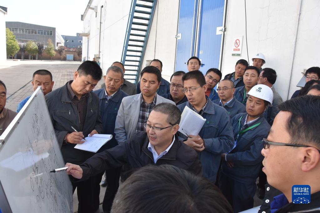 2015年10月12日,在山西省太原市,付鵬程(中)為糧庫工作人員進(jìn)行培訓。