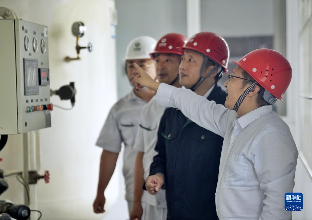 9月23日,在位于四川省眉山市的中央儲備糧眉山直屬庫,付鵬程(右一)為糧庫技術(shù)人員講解制氮設備操作使用程序。