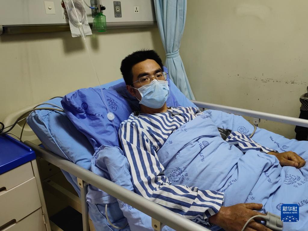 9月26日,在四川大學(xué)華西醫院創(chuàng )傷醫學(xué)中心普通病房里,甘宇在病床上休息。新華社記者 董小紅 攝