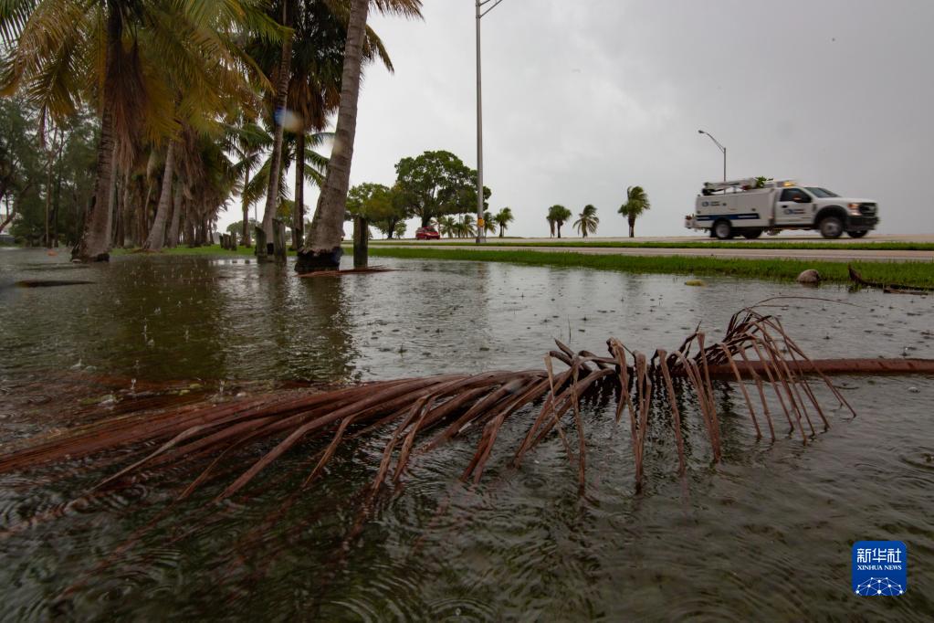 9月27日,在美國佛羅里達州邁阿密,颶風(fēng)登陸前的降雨導致當地水位升高。
